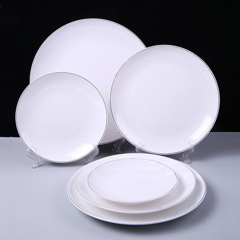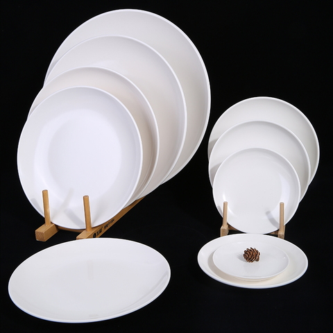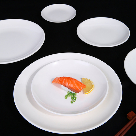 Melamin runde Restaurant Großhandel angepasste weiße Teller Teller Essteller Teller-Set leicht zu reinigende Geschirr